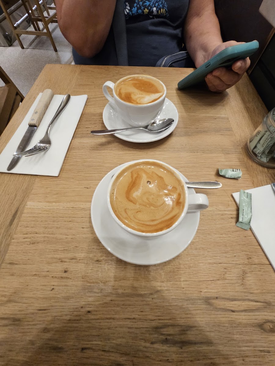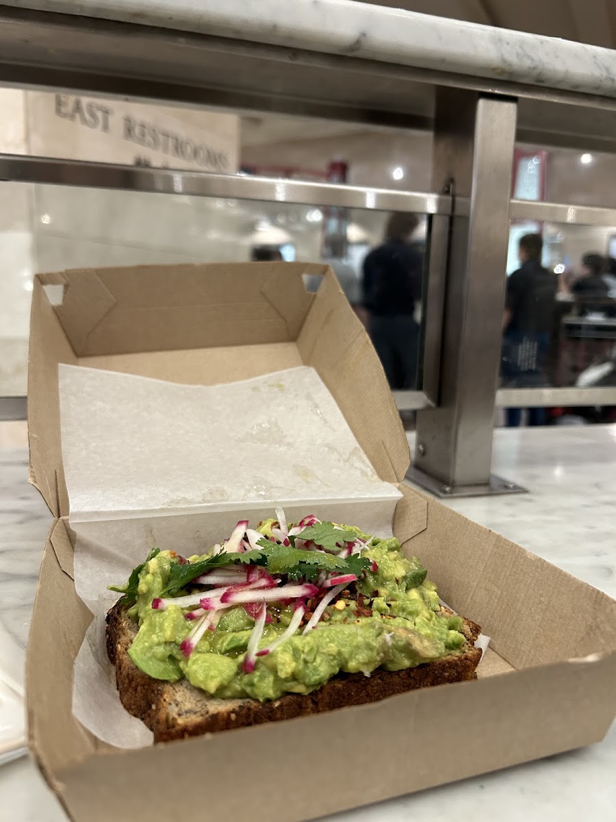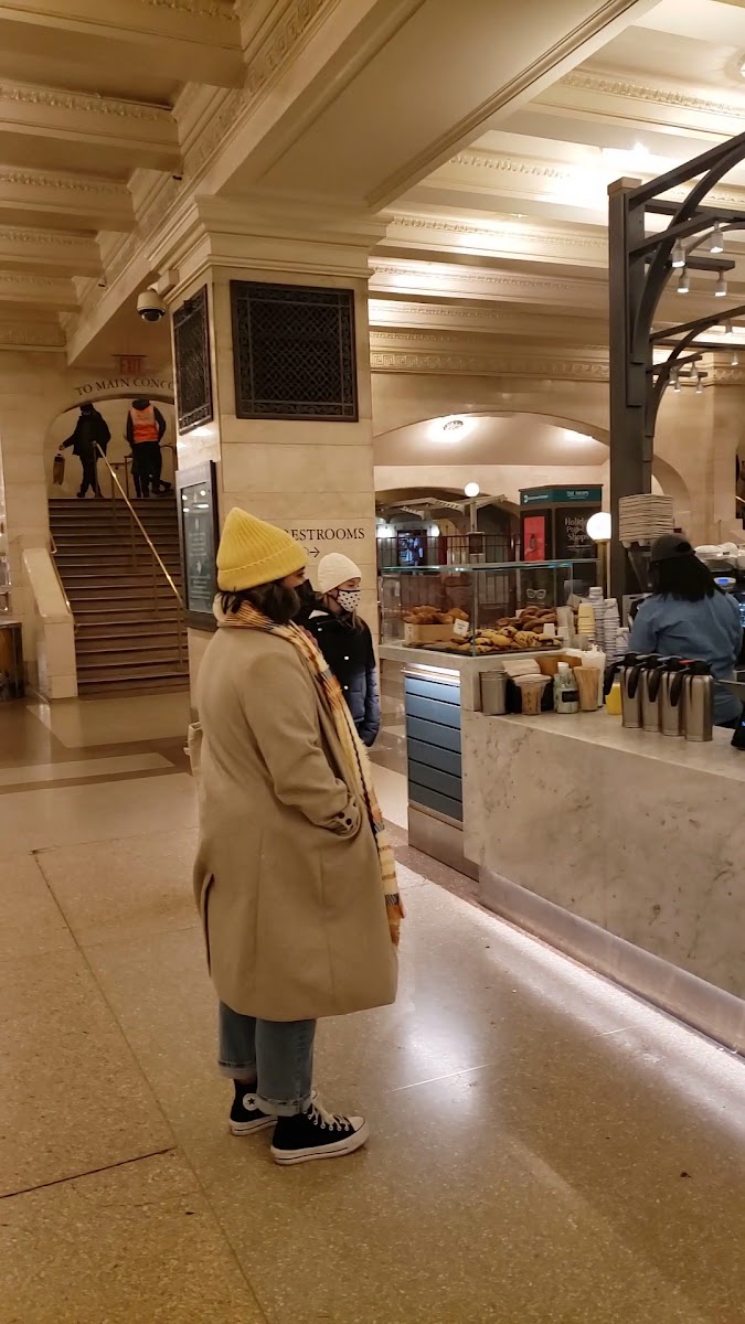 Grand Central Station! The atmosphere rocks! It is a very open cafe in the center of the food court area. We didn't have a reservation for our 10:00 a.m. brunch, but were seated right away. We had a couple of drip coffees, Creamy Burrata Tartine, and Egg and Smoked Salmon on Toast. It arrived quickly and was delicious. Our server was also quick with coffee refills. It was great having a delicious brunch and watching the world go by in Grand Central Station. Seated around us were customers speaking many languages and having a good time. The experience made our day!